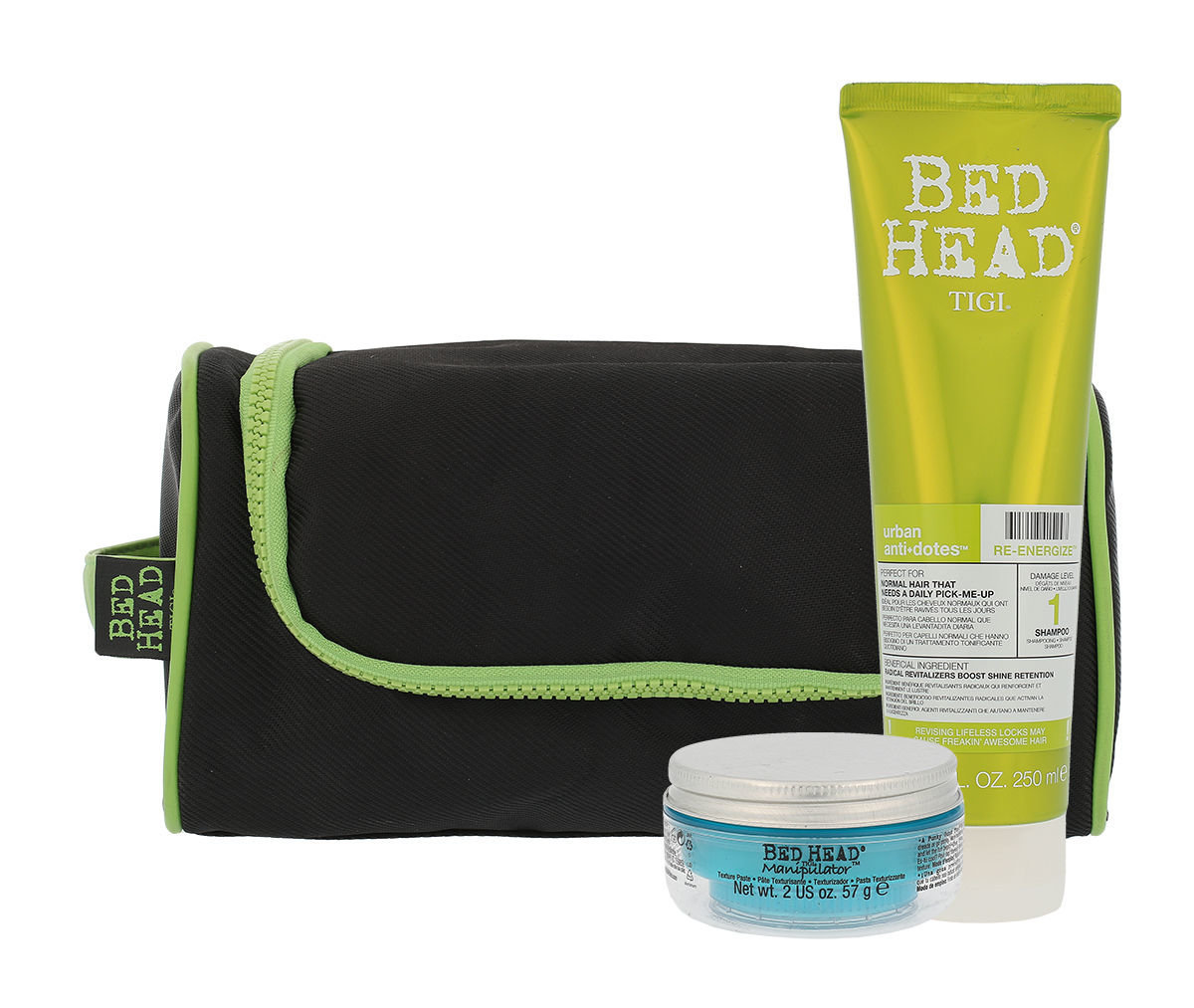 Tigi Bed Head Re-Energize šampon Re-Energize 250 ml + modelační krém na vlasy Bed Head Manipulator Texturizer 57 ml + taštička