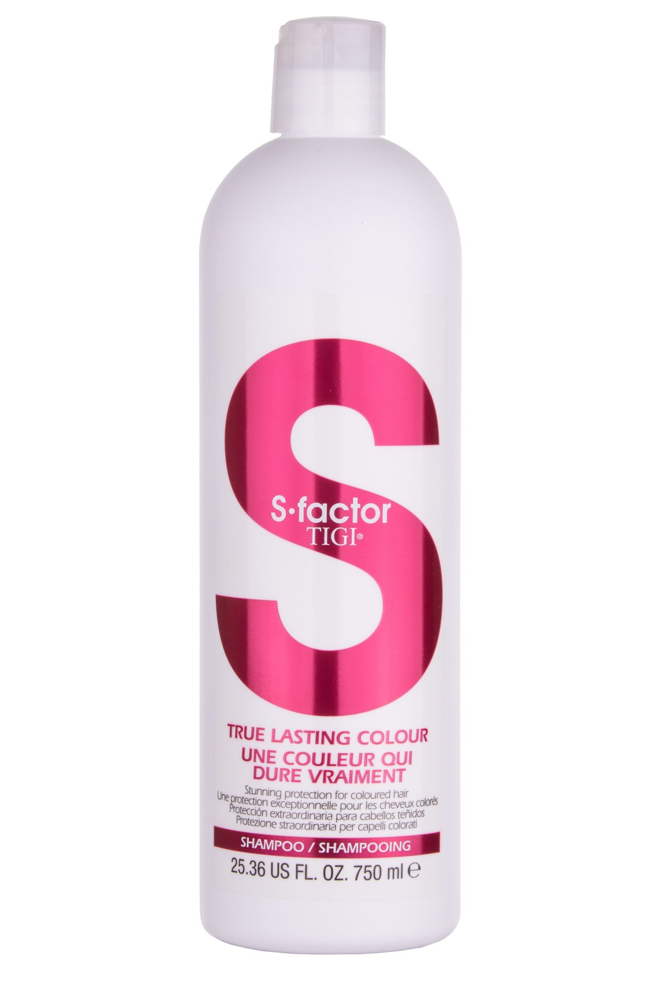Šampon Tigi S Factor True Lasting Colour Shampoo. Šampon Tigi S Factor True Lasting Colour Shampoo pro barvené vlasy. Chrání barvu a udržuje zářivé tóny po dlouhou dobu. Obohacen o průsvitné světlo odrážející olejové mikročástice, které dodávají vlasům zářivý lesk. Obsahuje pečující formuli...