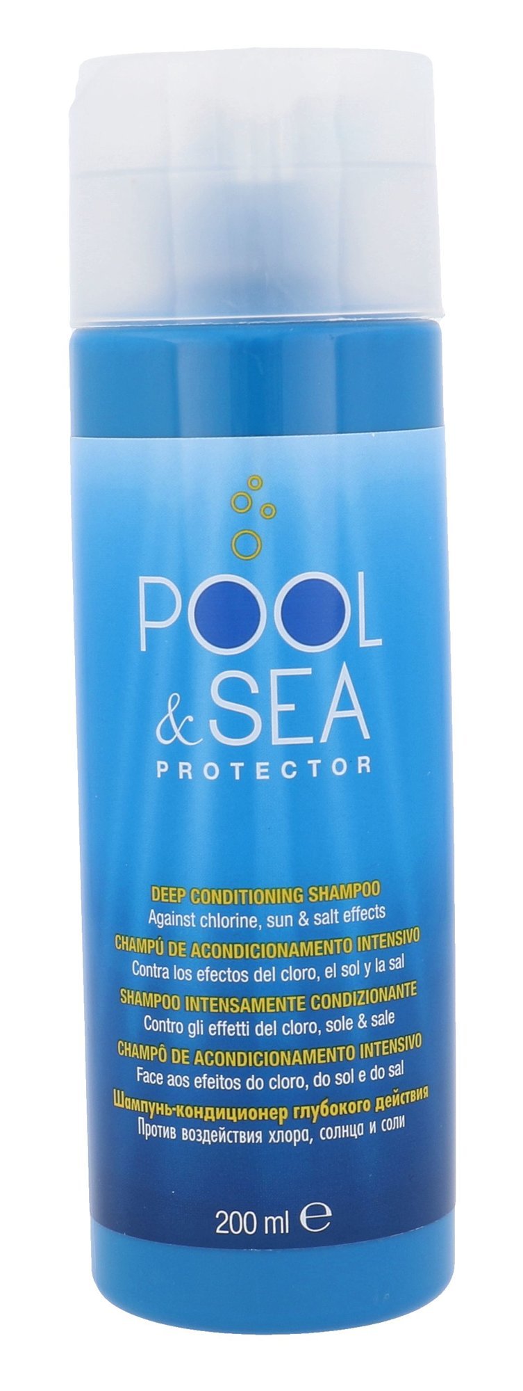 Šampon Revlon Pool & Sea Protector Deep Conditioning Shampoo. Šampon Revlon Pool & Sea Protector Deep Conditioning Shampoo chrání vlasy před škodlivými vlivy jakou jsou chlorovaná voda, slaná voda a sluneční záření. Zabraňuje blednutí barvy, lámání vlasů a třepení konečků. Zanechává vlasy hebké a lesklé.