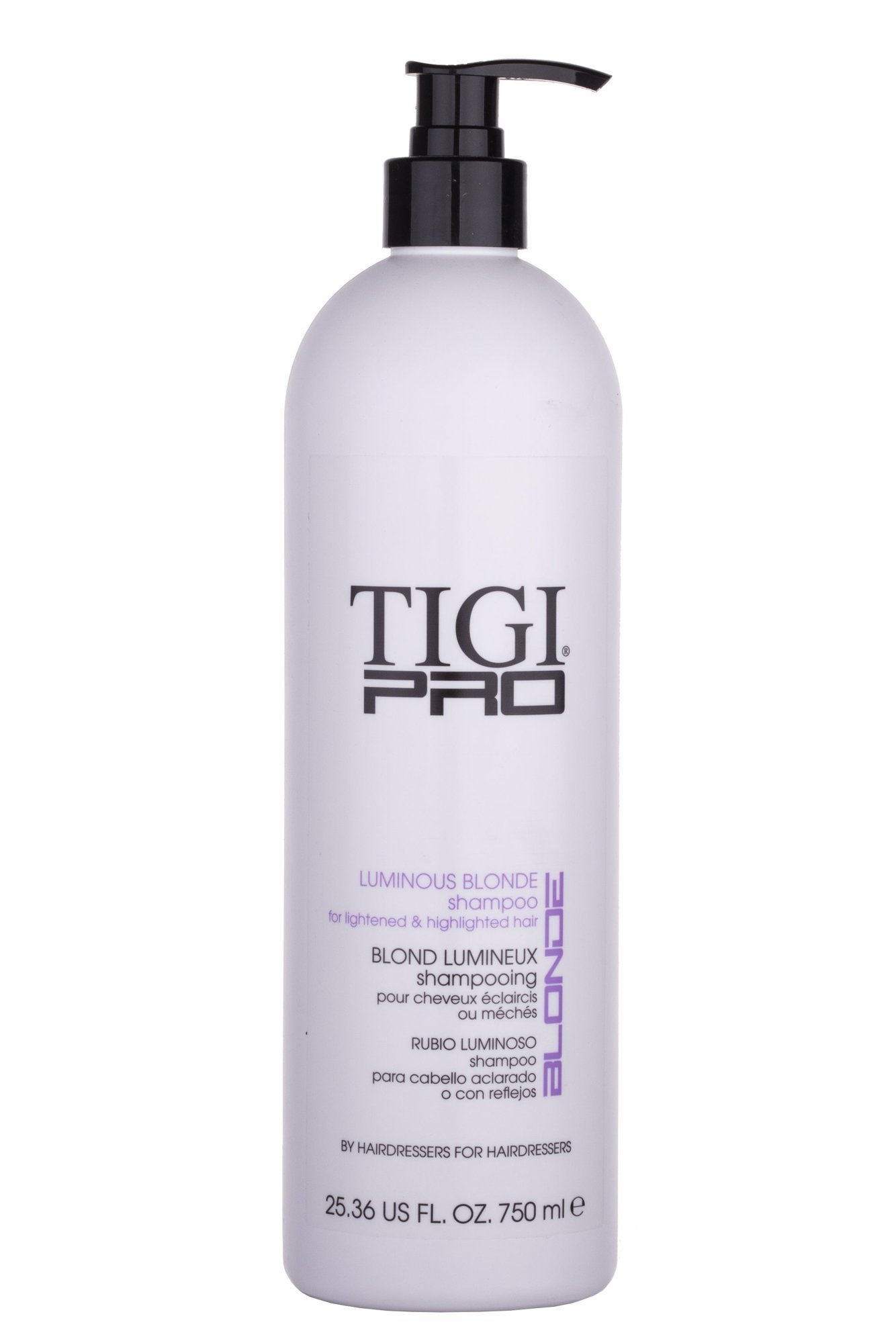 Šampon Tigi Pro Luminous Blonde Shampoo. Šampon Tigi Pro Luminous Blonde Shampoo šetrně pečuje o blond vlasy. Jemně vlasy čistí a dodává jim oslnivý lesk. Po použití budou vlasy svěží a oslnivé lesklé. Použití: Aplikujte na mokré vlasy. Jemně masírujte a poté důkladně opláchněte.