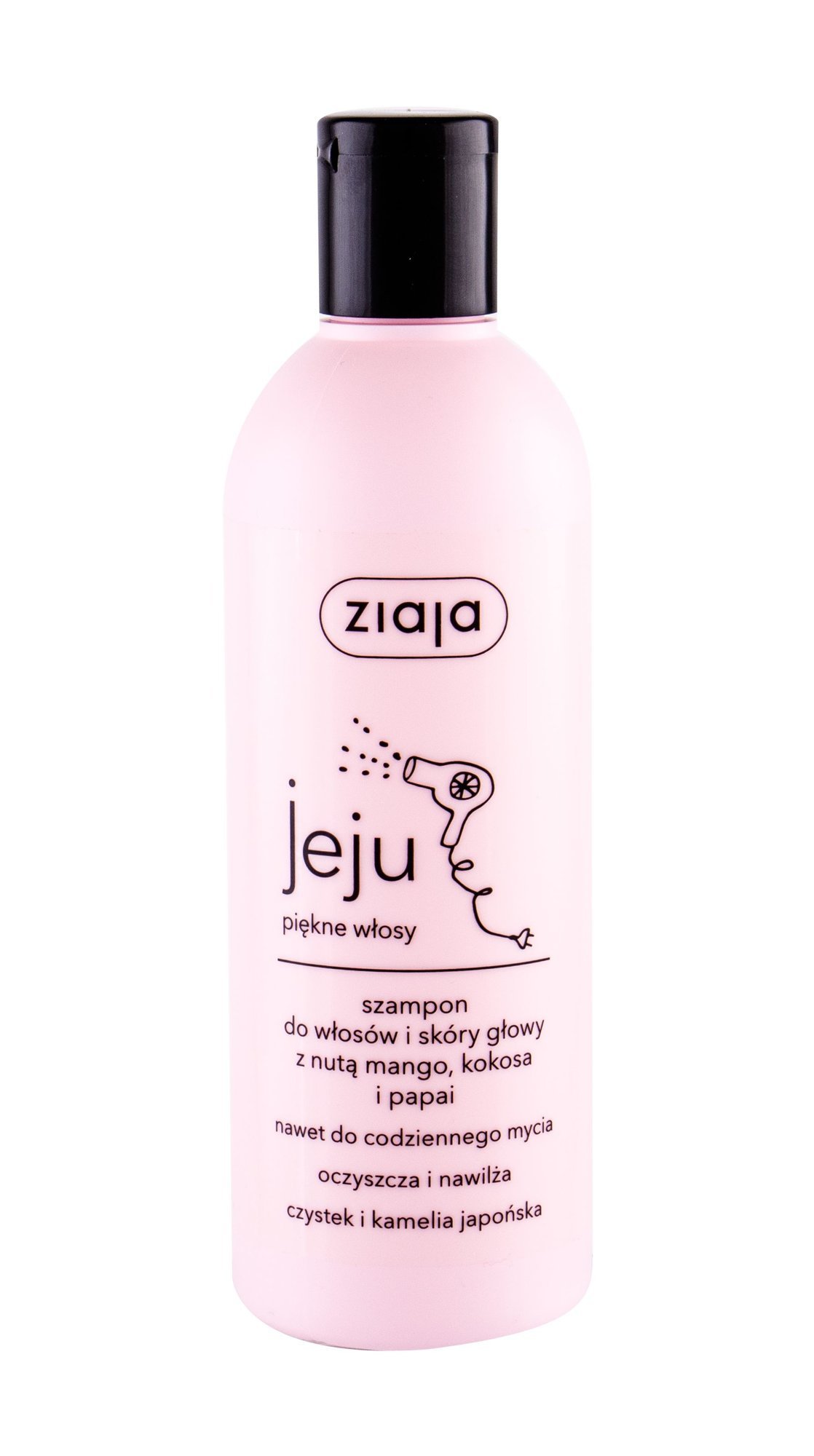 Šampon Ziaja Jeju má složení zaměřené na potřeby mladých vlasů a vlasové pokožky. Obsahuje olej z japonské kamélie, který udržuje vlhkost ve vlasech, zabraňuje tvorbě lupů, zlepšuje stav roztřepených konečků, zjemňuje vlasy a mnoho dalšího.