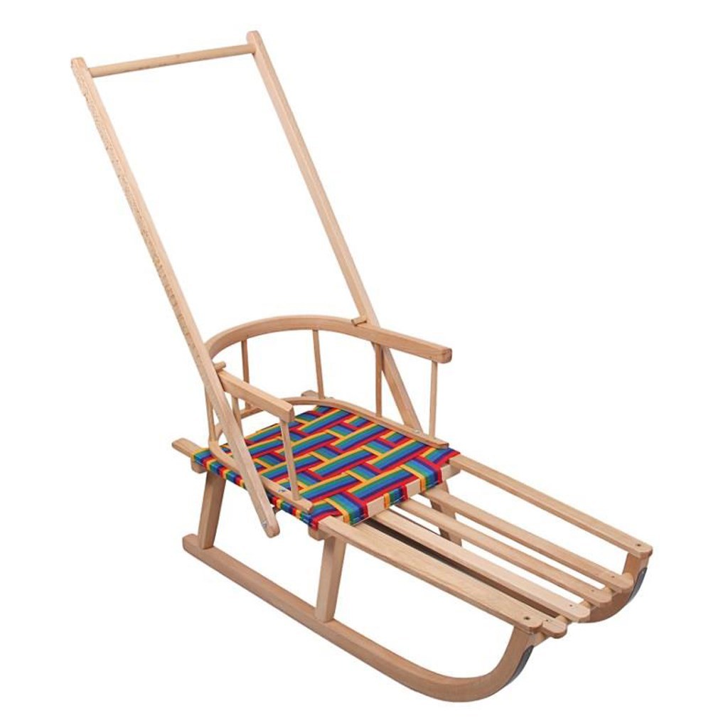 Dětské dřevěné sáňky české značky New Baby s rukojetí pro děti. Vyrobeny z bukového dřeva, určené pro rekreační sáňkování. Sedadlo je vyplétané textilními nepromokavými popruhy. Spodní část je opatřena ocelovou skluznicí.Technické parametry:- délka saní: cca 86 cm - délka sedáku: cca 38cm - šířka sedáku: cca 33 cm- výška bez opěráku: cca 22 cm- výška s opěrákem: cca 41 cm- výška sání s madlem: cca 93 cm- délka dřevěného madla: cca 89 cm