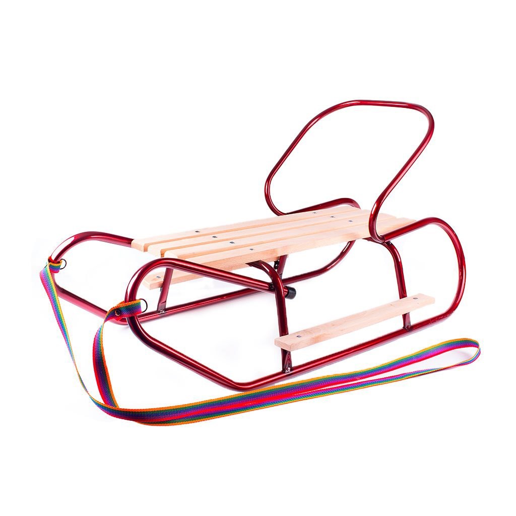 Kovové sáňky s opěradlem a opěrkami na nohy BAYO červené