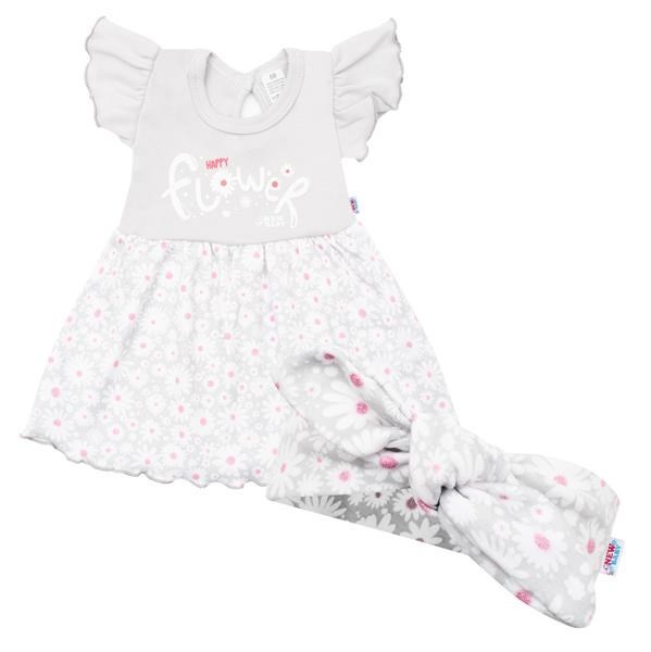 Kojenecké letní bavlněné šatičky s čelenkou New Baby Happy Flower šedé - velikost 56 (0-3m)
