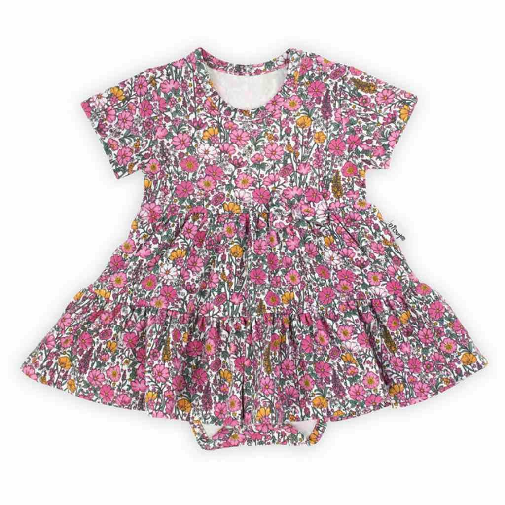 Stylové a praktické kojenecké šatičky-body s krátkým rukávem Nicol Lea. Šatičky Áčkového střihu celopotištěné zajímavým vzorem jsou vhodné na doma i na procházky. Šatičky jsou ušité na styl body a jsou neodmyslitelnou součástí holčičího šatníku. Jsou krásně nařasené. Zapínání na cvočky na ramínku a mezi nožičkama ulehčí oblékání a přebalování. Materiál: 100% bavlna.
