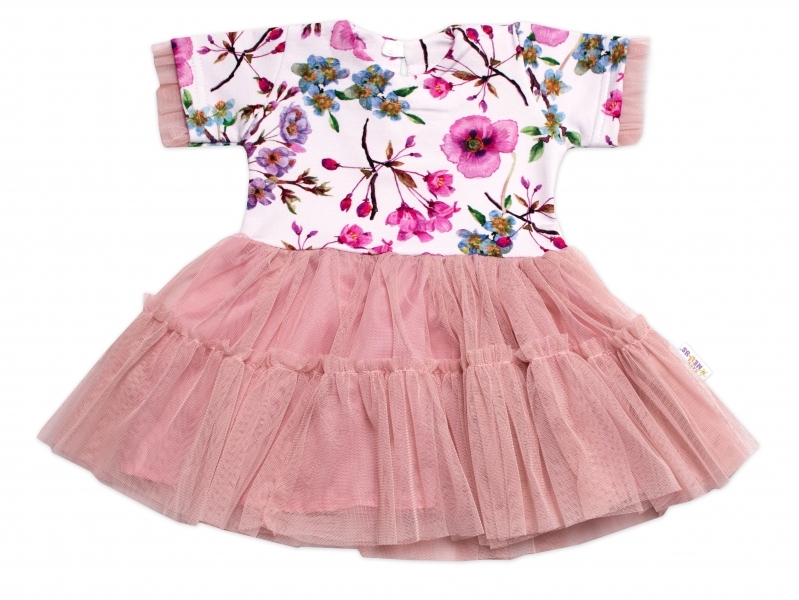 Šaty s tylovou sukní kr. rukáv, Macešky Baby Nellys, pudrové