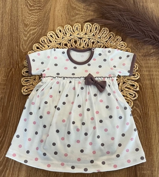 Bavlněné šaty s mašličkou, kr. rukáv, Puntík, Mamatti, smetanové s potiskem, vel. 80; 80 (9-12m)