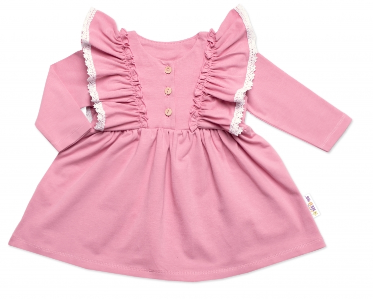 Kojenecké šaty dlouhý rukáv s volánky Amálka, bavlna, Mrofi, pudrově růžové, vel. 92; 92 (18-24m)