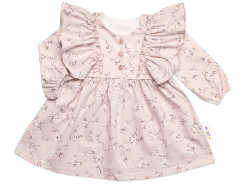Dívčí šaty dlouhý rukáv s volánky Sára, bavlna, Mrofi, cappucino, vel. 92; 92 (18-24m)