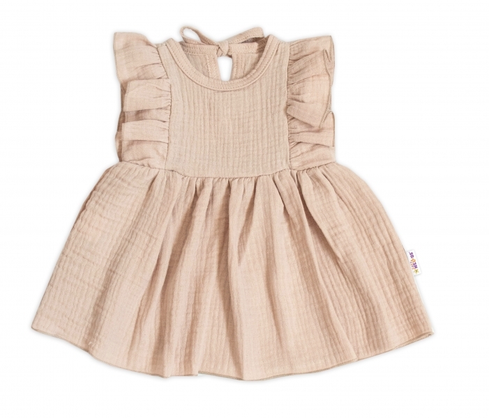 Baby Nellys Lehké mušelínové šatičky, béžové, vel. 104; 104 (3-4r)