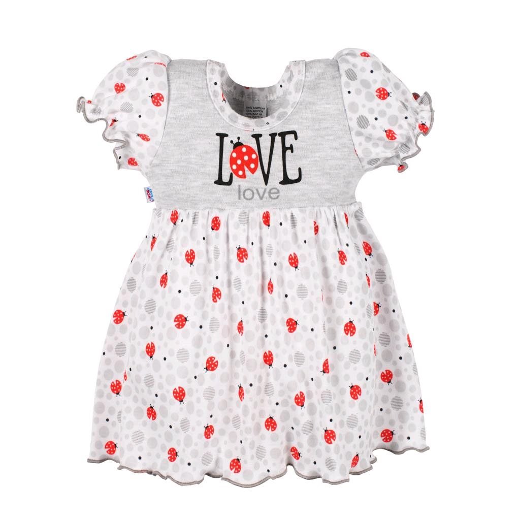 Bavlněné dívčí šatičky české značky New Baby LadyBird pro malé princezničky. Dětské šatičky mají rukávky a nařasenou sukýnku potištěnou beruškami. Přední strana je zdobena nápisem love. Zapínání na ramínku. Složení: 100% bavlna. prečítať celé