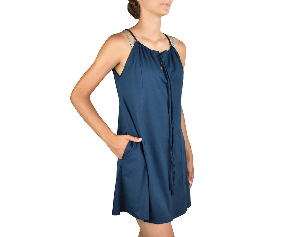 Šaty SHARON mají tenká ramínka, která si můžete nastavit pomocí šňůrky ve výstřihu – upravíte si tak délku ramínek i hloubku výstřihu podle sebe. Nechybí ani dvě praktické boční kapsy. Díky příjemné bavlně a střihu do "A" jsou ideální do horkých letních dnů – skvělé jako samostatné šaty nebo jako delší top k legínám.