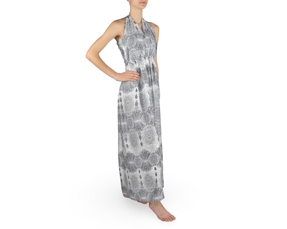 Dámské dlouhé šaty Amelia, bílé, tmavě modré mandaly
