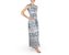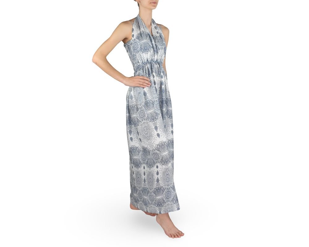 Dlouhé letní šaty s jedinečnými vzory. Šaty jsou bez rukávů, hrudní část je řešena žabičkováním do pasu i zavazováním kolem krku.Rozměry: délka: 125 cm, délka žabičkování: 25 cm, délka sukně: 100 cm, šířka přes prsa: 28-60 cm.Materiál: 100% viskózaTextil, který nosíte, položte volně na stůl či...