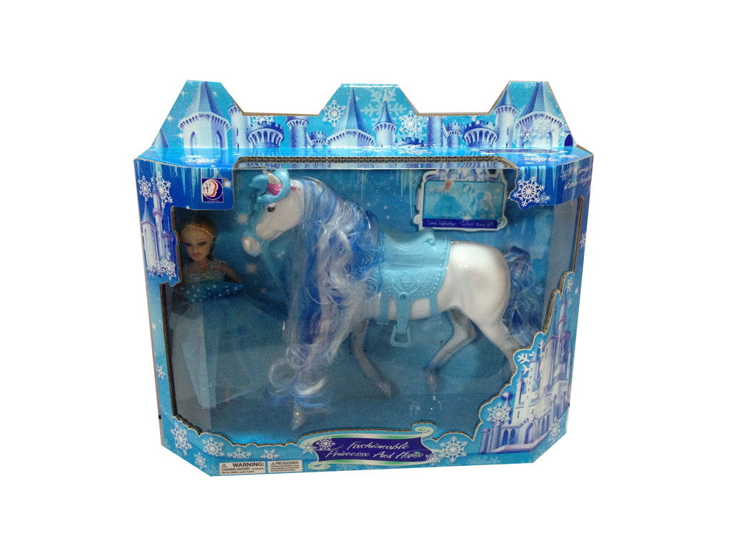 Sada obsahuje panenku v modrých šatech a koníka s krásnou modrobílou hřívou. prečítať celé