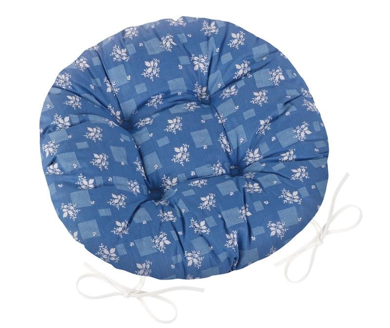 Sedák Adéla prošívaný kulatý - modrotisk - průměr 40 cm