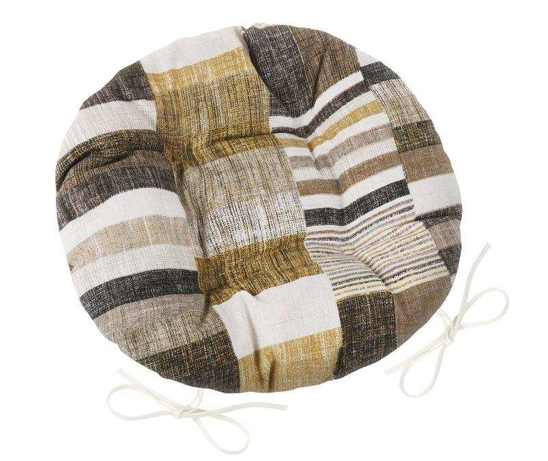 Sedák EMA kulatý prošívaný - dlaždice hnědobéžové - průměr 40 cm