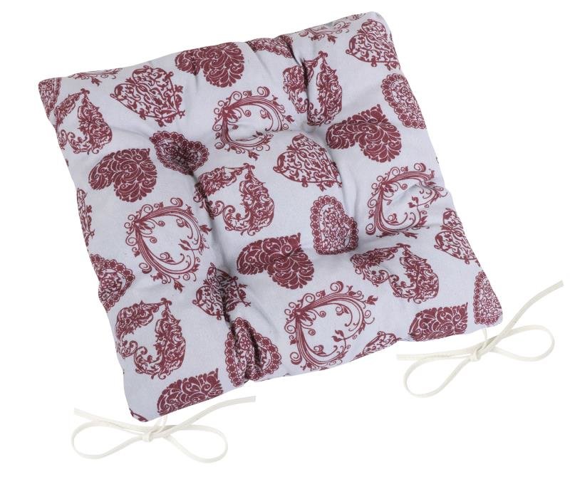 Sedák DITA prošívaný - krajkové srdce - vínová, režná - 40x40 cm, prošívaný