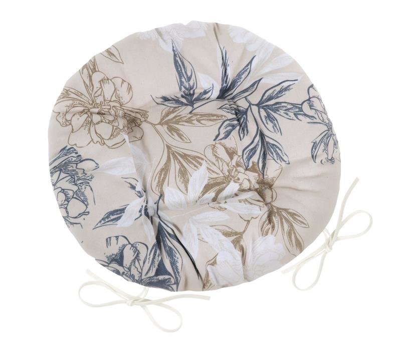 Sedák DITA kulatý prošívaný - šedobéžový květ - průměr 40 cm