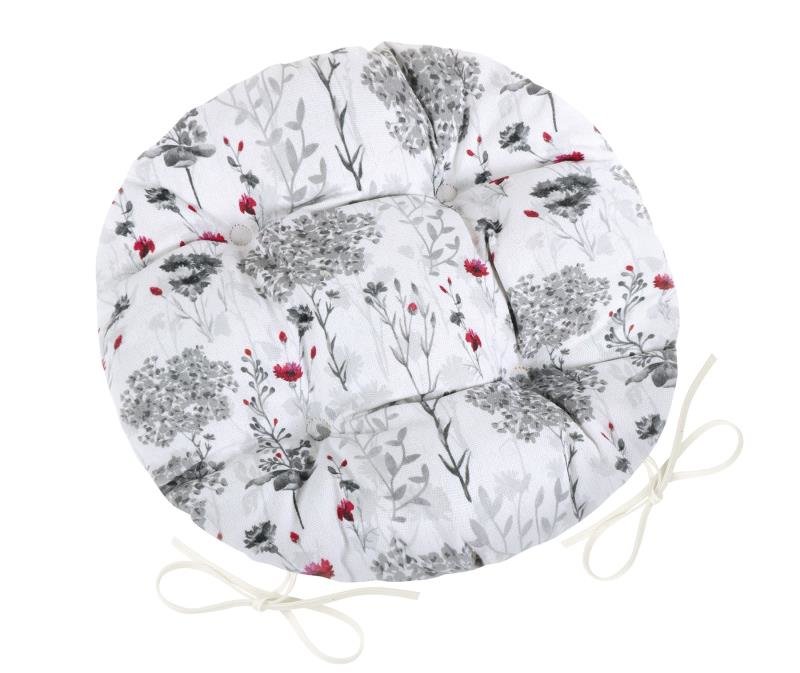 Sedák DITA kulatý prošívaný - šedé větvičky - šedá, červená, bílá - průměr 40 cm