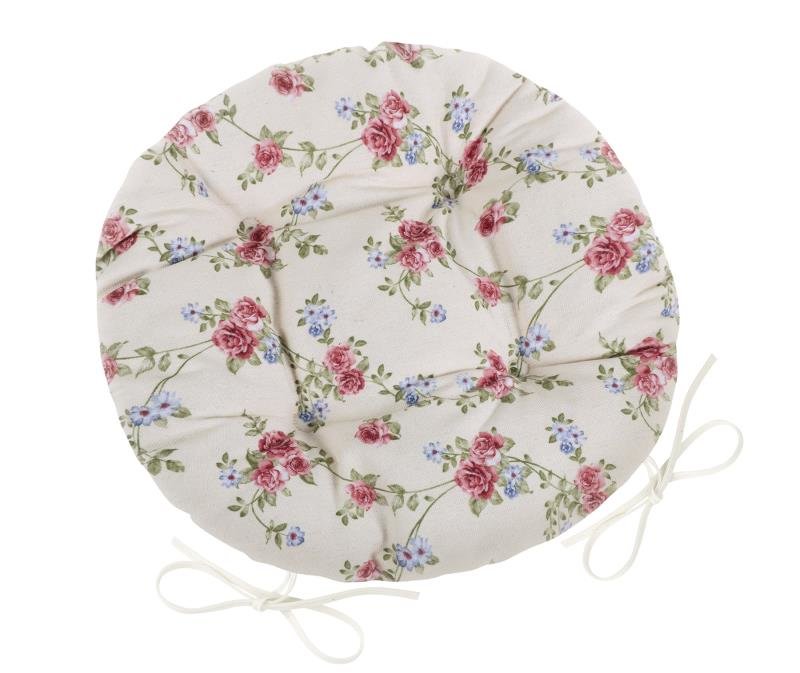 Sedák DITA kulatý prošívaný - Růžička pnoucí růžová, béžová, zelená - průměr 40 cm