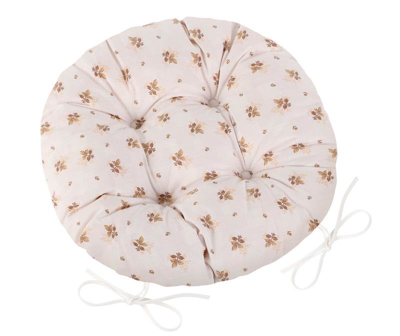 Sedák Adéla prošívaný kulatý - béžová kytička - průměr 40 cm