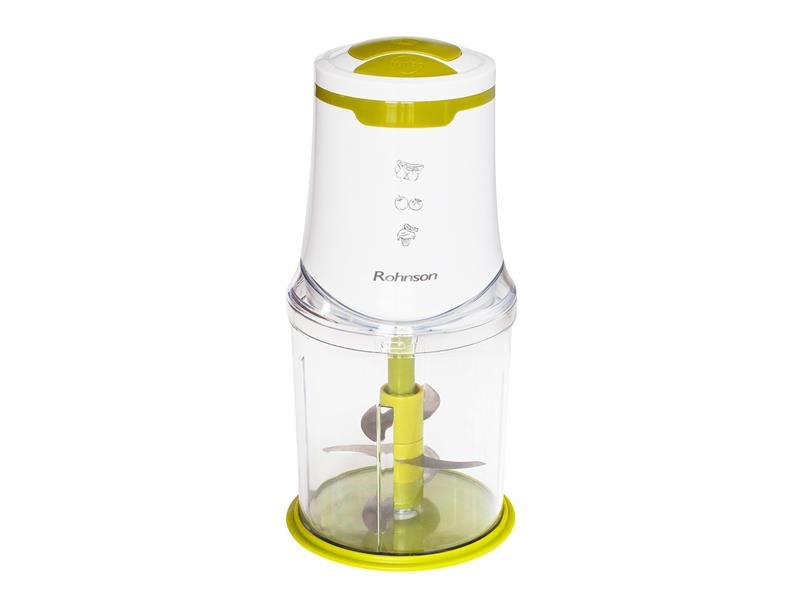 Sekáček potravin ROHNSON R-516 s trojitým sekacím nožem s celkem 6 nerezovými břity a mixovací nádobou s objemem 1 litr. Sekáček má výkonný motor s příkonem 650 W.