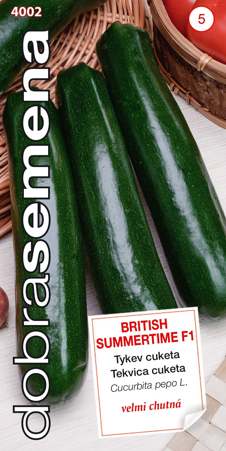 BRITISH SUMMERTIME F1 - výjimečná cuketa s otevřeným habitem a minimem ostnů pro snadnou sklizeň - „easy pick“ cuketa. Raný a vysoce úrodný hybrid. Štíhlé a delší tmavě zelené plody si zachovávají štíhlý tvar i při přerůstání. Jsou jemné a velice chutné. Plody...