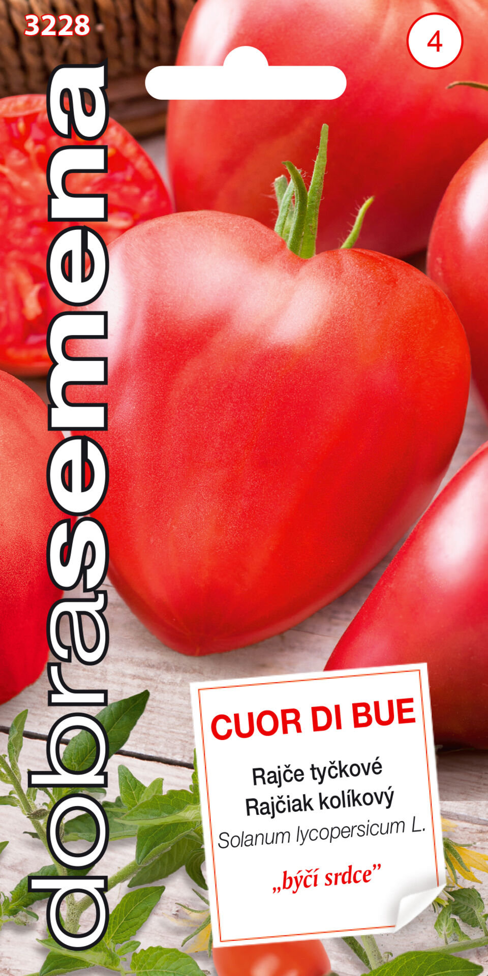 "býčí srdce". Velké masité rajče dorůstající hmotnosti až 350 g. Plody jsou kapkovité, růžovočervené, s výtečnou chutí. Tyčková odrůda pro pole i fóliové kryty. Dodržujte vyrovnaný vláhový režim, předejdete tak praskání plodů.
