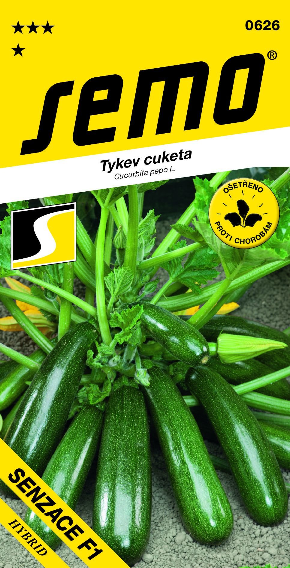 SENZACE F1 SM (kód 0626) - velmi výnosná cuketa s kratšími válcovitými, tupě zakončenými plody středně zelené barvy s jemně síťovanou slupkou o délce 16-20 cm s vysokým podílem výběrových plodů. Velmi chutné lahůdkové plody jsou určeny pro intenzivní sklizeň...