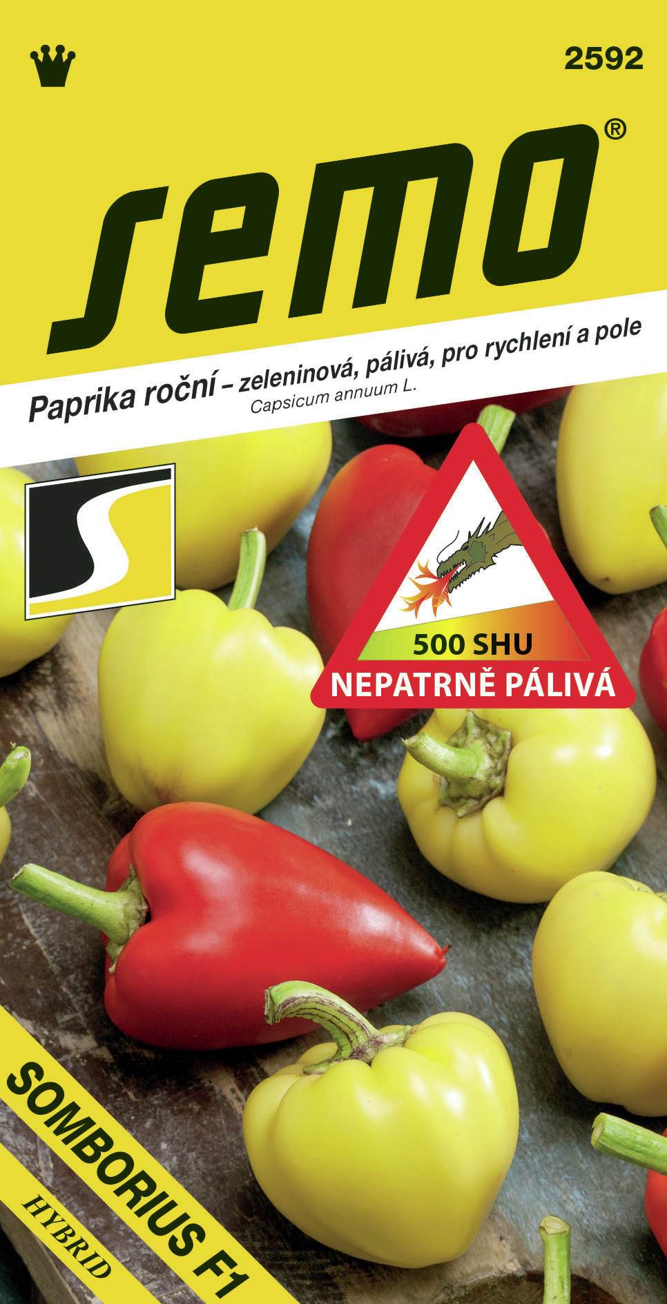 SOMBORIUS F1 - hybridní paprika typu „SOMBORKA“. Název tohoto na Balkáně velmi populárního typu papriky je odvozen od srbského města Sombor. Jedná se o velmi mírně pálivou papriku (SHU 400–600) s kratšími, široce jehlancovitými plody. Sklízí se především v technické zralosti, kdy plody mají...