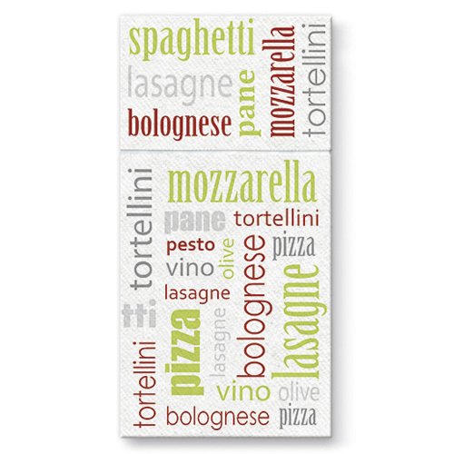 Kapsy na příbory PAW Airlaid 40x40cm Italian Food Green, 25 ks/bal