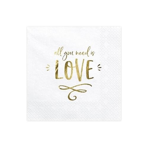 Papírové party ubrousky bílé All you need is love 20 ks