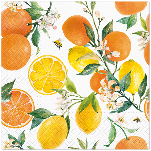 Tieto servítky prinesú do vášho domova radosť a sviežosť vďaka nádhernému motívu citrusov a včielok. Sú ideálnou voľbou nielen na každodenné použitie, ale aj na špeciálne príležitosti, keď chcete prostredie ozvláštniť a dodať mu šmrnc.