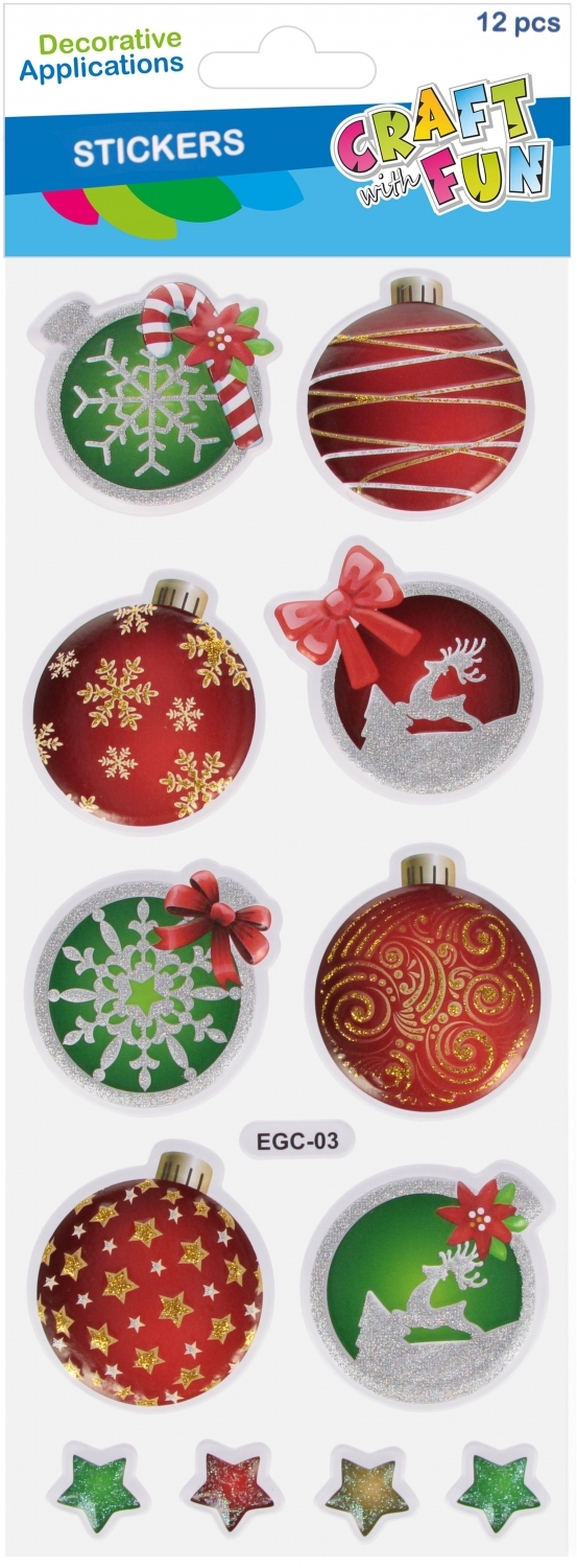 Naklejki Bombki/Gwiazdki puffy op.12szt.Boże Narodzenie CRAFT WITH FUN 521658