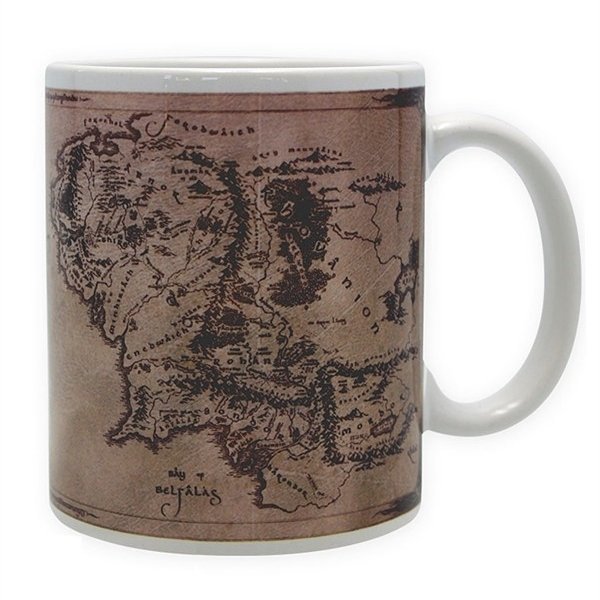 Hrníček s potiskem - zdobený mapou Středozemě z Tolkienova Pána prstenů. Objem hrnku je 280 ml. prečítať celé