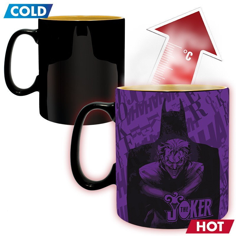 Co by byl Batman bez Jokera? Temný rytíř je vždy pronásledován smíchem a ďábelským úsměvem svého soka v zápase o město Gotham. Připomeňte si nesmrtelnou dvojici z univerza DC Comics krásným matným keramickým hrnkem, jehož grafika reaguje na teplotu nápoje nalitého dovnitř. Hrnek není vhodný do mikrovlnky ani do myčky.