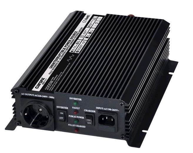 Napěťový měnič Carspa UPS1000-12 12V/230V 1000W s nabíječkou 12V/10A a funkcí UPS