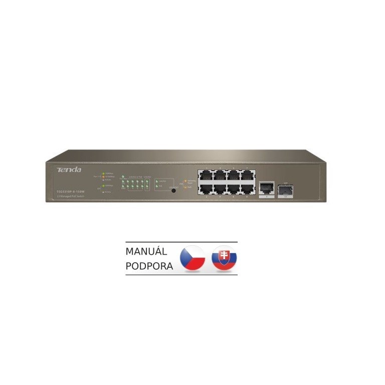 Tenda TEG5310P-8-150W - L3 managed Gigabit PoE AT Switch, 8x PoE AF/AT 10/100/1000Mbps, 1xSFP 1Gbps