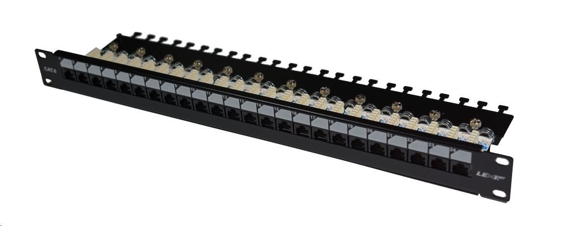19" Patch panel LEXI-Net EXCLUSIVE 24port, UTP, 50µm, Cat6, duální svorkovnice, černý