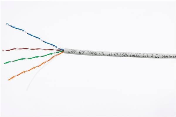 UTP kabel LYNX, Cat5E, drát, LS0H, Dca, šedý, 305mTechnické informaceKategorie:Cat5EPodporované protokoly: 10/100/1000 Mb/sStínění:NEPlášť:LS0HIzolace vodiče/tloušťka/průměr:polyethylen / 0,201mm / 0,91mmStandardy:EIA/TIA568-B.2 pro kategorii 5E, EN 50173-1, EN 50288-3-1Barva pláště:šedá barva,...