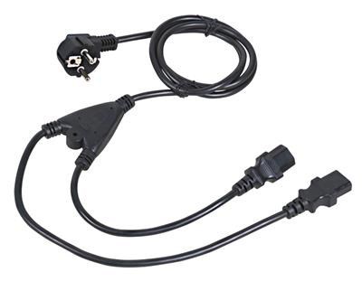 - Dvojitý Standardní Konektor: Síťový kabel je vybaven dvěma standardními konektory, které umožňují připojení dvou počítačů k jednomu zdroji napájení, což šetří místo a zjednodušuje použití elektrické energie.