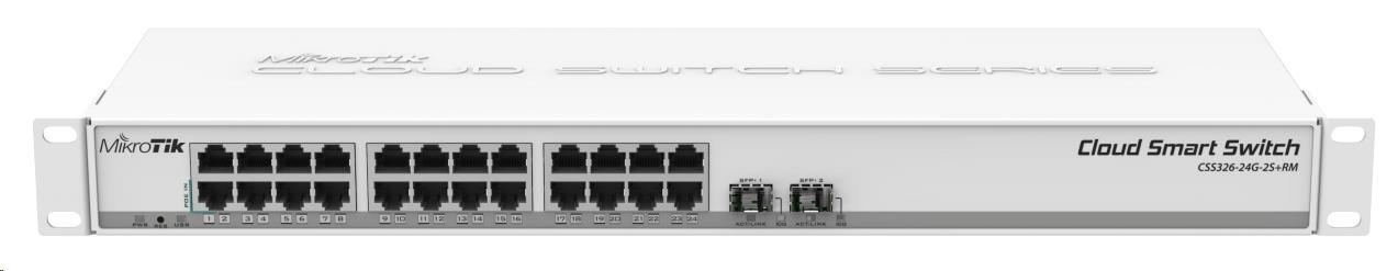 MikroTik Cloud Smart Switch CSS326-24G-2S+RM24 portový non-blocking gigabitový switch s web managementem. K dispozici jsou dále 2xSFP+ sloty. Je použit switch chip Marvell DX, operační systém SwOS zajišťuje základní funkcionality tak i pokročilé funkce: port-to-port forwarding, MAC filter, VLANy,...