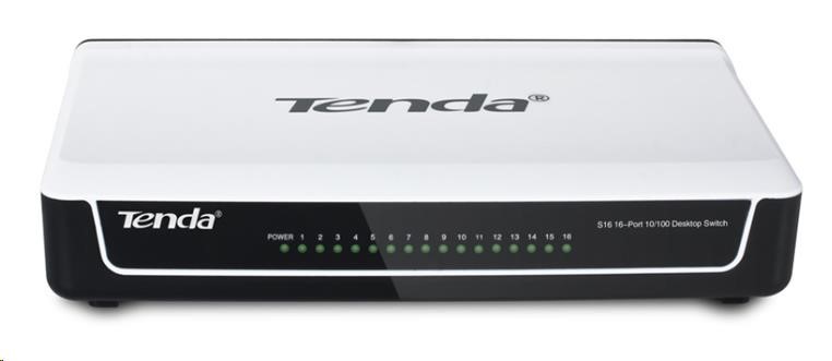 Tenda S16 16-Port Fast Ethernet Switch, 10/100 Mb/s, Desktop