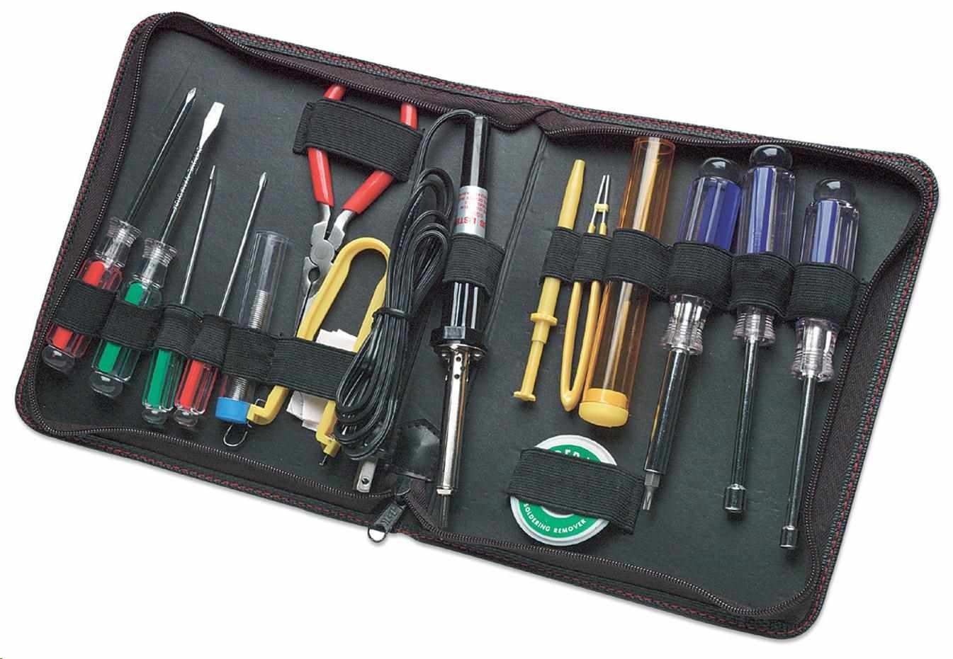 Technician Tool KitComputer Tool Kit, 17 piecesIdeal for all types of routine computer maintenance, upgrades and general repairHeavy-duty, zippered carrying caseLifetime WarrantySPECIFICATIONSSoldering iron, solder wick and solderAnti-static chip inserter, anti-static chip extractor, anti-static...