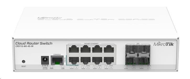 MikroTik Cloud Router Switch CRS112-8G-4S-IN, 400MHz CPU, 128MB RAM, 8xLAN, 4xSFP slot, vč. L5 licence