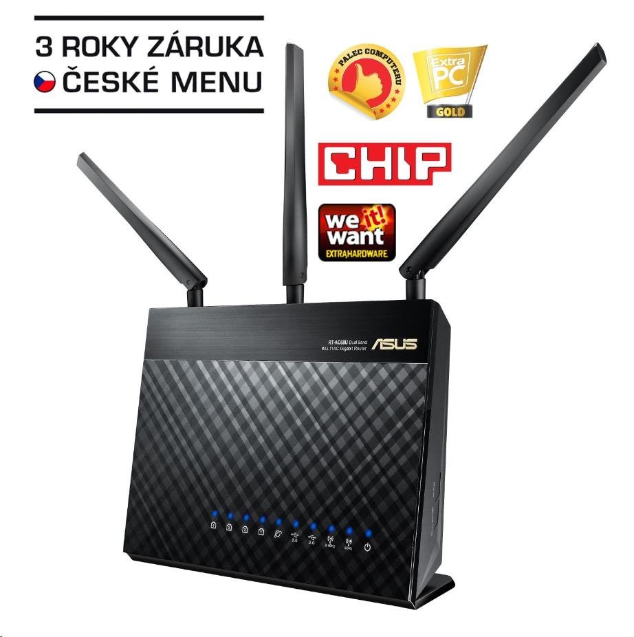 ASUS RT-AC68U v3 Gigabit Dualband Wireless AC1900 Router, 4x gigabit RJ45, 1x USB3.0, 1xUSB2.0