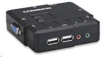 MANHATTAN KVM přepínač 2 porty, VGA, USB, audio, včetně kabelů