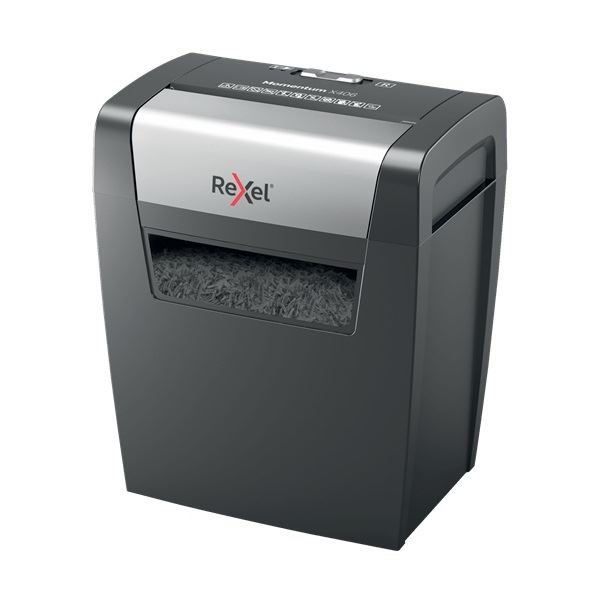 Nezastavitelná skartovačka! Rexel Momentum X406 skartuje až 6 listů najednou a vydrží v nepřetržitém chodu 3 minuty, vhodná pro domácí použití Křížový řez na úrovni zabezpečení P4 řeže papír na malé části o velikosti 4x28 mm Odpadní koš s kapacitou 15 l pojme 125 listů A4*Rozměry: 32,5 x 34,3 x 22,9 cm (š x v x h)