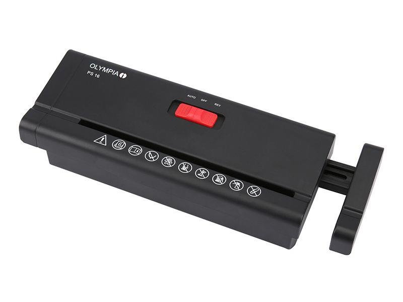 Skartovačka OLYMPIA PS 16 BLACK Osobní skartovač pro použití v domácnostech a menších kancelářích s možností využití libovolné odpadní nádoby.Vlastnosti:- Osobní skartovač vhodný pro domácí kancelář- Skartuje v proužku 6 mm až 5 listů papíru 80 g/m²- Pracovní šíře 220 mm-...
